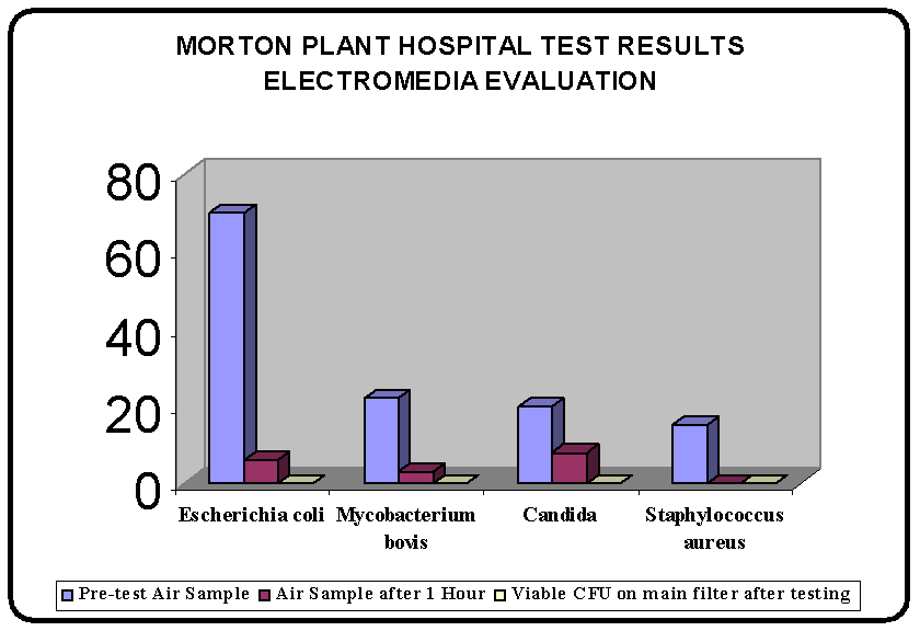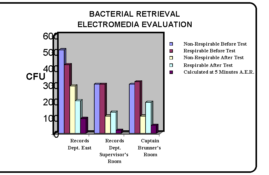 The use of ELECTROMEDIA will help you attain many of these desired results in a cost effective manner. The number of bacterium are not only reduced but many are destroyed making this method safer than dilution and exhausting. With a highly efficient blower motor we can quietly generate up to 1050 cfm to provide as many as 20 air changes per hour in a room 20w x 15l x 10h without any danger of bringing contaminated air in through fresh air ducts.
